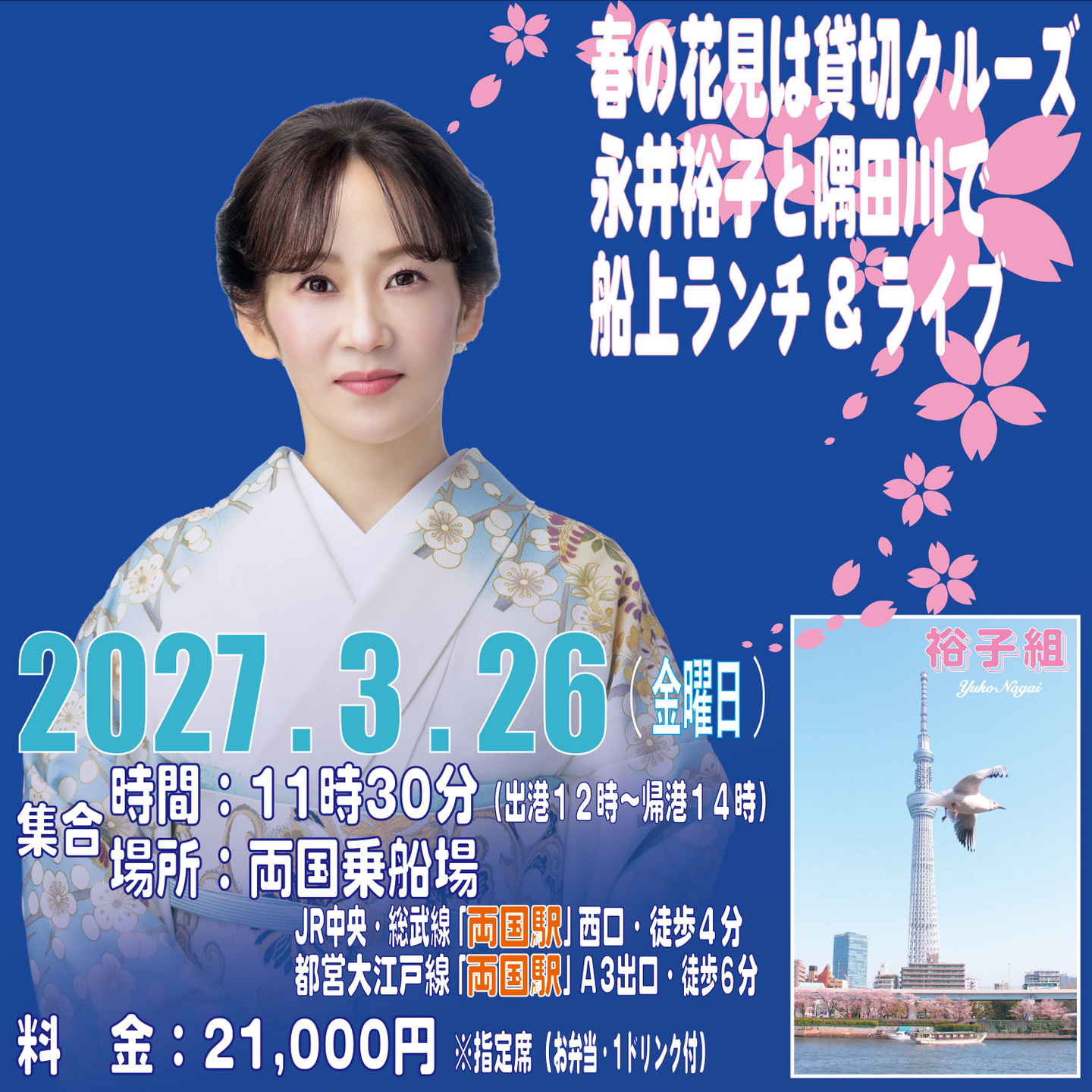 Yuko Nagai YouTube Channel ,,paging,{"site": "ameba", "blogid": "yukonagai0621", "max_results": "10", "link_words": "続きは永井裕子 Official Blog へ"} 【ココロウタは3分間のシネマです】 永井裕子がココロを込めて唄います。 ご視聴はこちら スケジュールカレンダー ネットショップ お客さまの「楽しさ」を大切にしています。 各イベントへのお問い合わせ・お申込みは 電話で問い合わせ メールで問合せ Spring Live 2026.5.11 (月)in 大阪・京橋 27th Anniversary Party 2026.6.21 (日)in 銀座 Christmas Launch&Live2026.12.7 (月)in 原宿 お花見 貸切クルーズ2027.3.26 (金)in 隅田川 神田DE演歌2026.4.23 (木)in 東京・神田 ふれあいコンサート2026.5.29 (金)in 徳島・美馬市 キャンセルをご希望のお客様はこちら Calendar 2026~2027 ご購入はこちら 2月25日発売「かずら橋恋唄」c/w「好いとっと」 ご購入はこちら ネットショップ はこちら ネットショップはこちら 【キルト生地製 ティッシュケース】 ファンクラブ入会案内 ファンクラブご入会こちら 手作り紙芝居 お父さん手作り紙芝居はこちら お問い合わせ お問合せは お気軽に プライバリーポリシー 特定商取引法に基づく表示 サイトトップ プライバリーポリシー 特定商取引法に基づく表示 サイトトップ