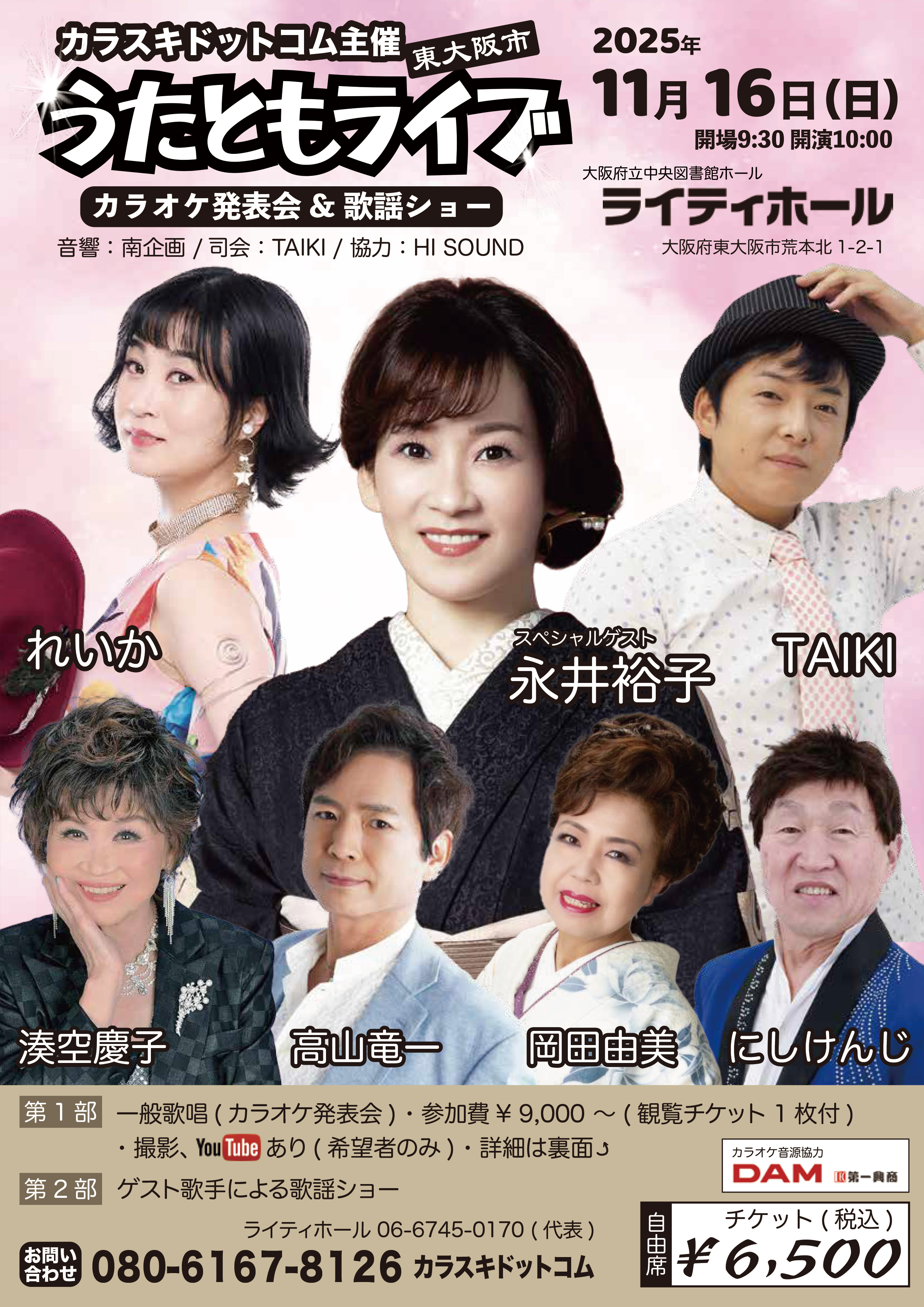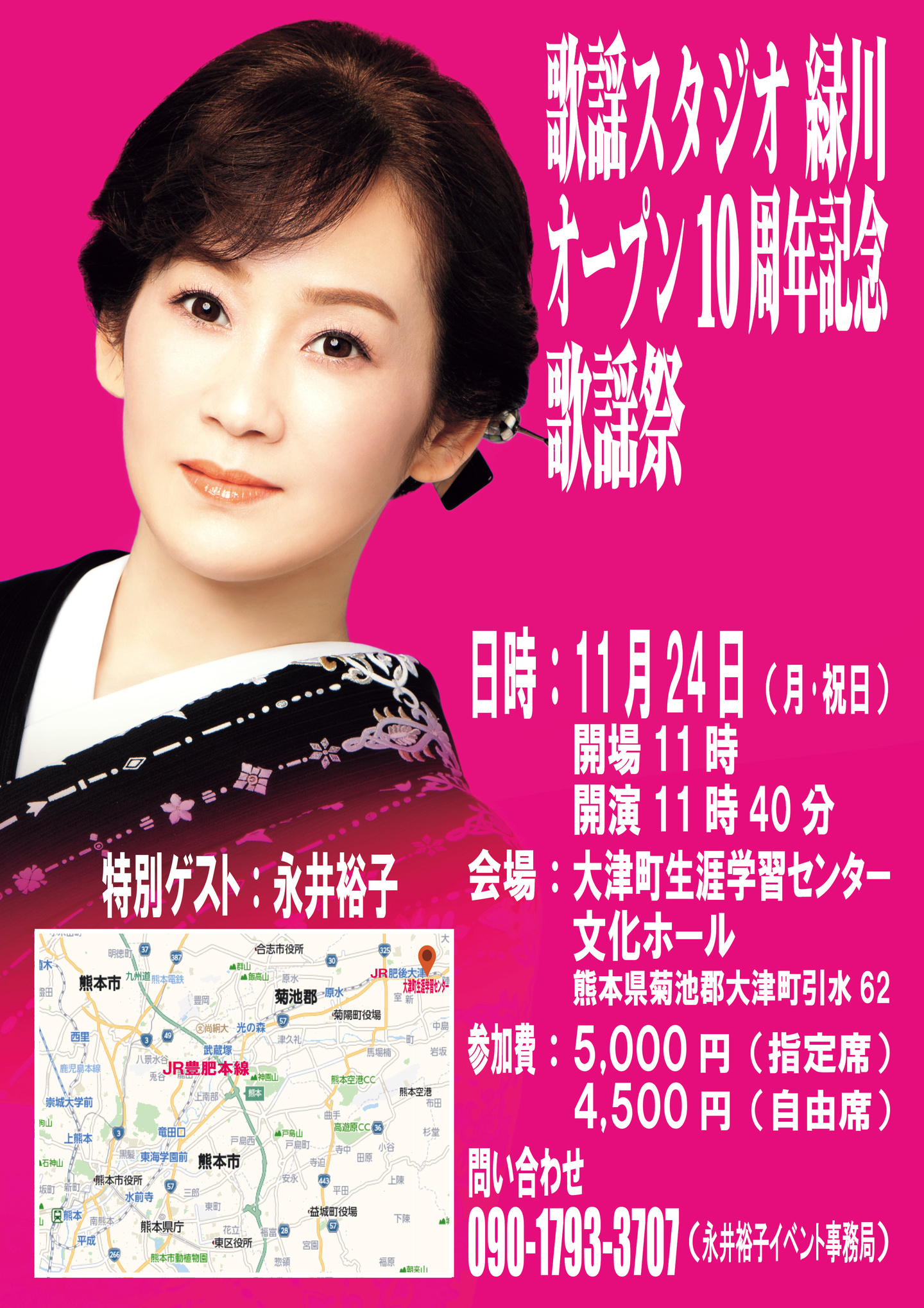 永井裕子ネットショップ ,,paging,{"site": "ameba", "blogid": "yukonagai0621", "max_results": "10", "link_words": "続きは永井裕子 Official Blog へ"} オフィシャルブログ ネットショップ 【キルト生地製 ティッシュケース】 新作・紺色バージョン イベント情報 スケジュール お客さまの「楽しさ」を大切にしています。 電話でのお申込みは事務局まで TEL:090-1793-3707 イベント情報 スケジュールお客さまの「楽しさ」を大切にしています。 電話でのお申込みは事務局まで TEL:090-1793-3707 うたともライブ 2025.11.16 (日)in 大阪 イベント事務局へお問い合せ下さい 歌謡祭 2025.11.24 (月・祝)in 熊本 イベント事務局へ お電話下さい。 東京演歌ライブ あいち 2025.12.4 (木)in 金山 イベント事務局へお問い合せ下さい なでしこ姉妹 Christmas 2025.12.8(月)party in 原宿 イベント事務局へ お電話下さい。 Christmas Premium Show2025.12.20(土)in 岐阜 イベント事務局へお問い合せ下さい 永井裕子と新年会 2026 2026.1.11 (日)in 東京・銀座 イベント事務局へ お電話下さい。 Birthday Live 2026 2026.3.2 (月)in 名古屋・納屋橋 イベント事務局へ お電話下さい。 Birthday Party 2026 2026.3.4 (水)in 東京・銀座 イベント事務局へ お電話下さい。 Birthday Live 2026 2026.3.6 (金)in 福岡 イベント事務局へ お電話下さい。 クルーズランチ&ライブ 2026.3.29 (日)in 東京・お台場 イベント事務局へ お電話下さい。 Early Summer Live2026.5.11 (月)in 大阪・京橋 イベント事務局へ お電話下さい。 キャンセルをご希望のお客様はこちら キャンセル規定 【ココロウタは3分間のシネマです】 永井裕子がココロを込めて唄います。 新作第4弾 ネットショップ 最新ピックアップ ネットショップ 最新ピックアップ 【キルト生地製ティッシュケース】 【キルト生地製 ティッシュケース】 水色・ピンク・赤・紺色の4色 ネットショップ注文 電話注文 【ペンライト2025+携帯用 特製巾着】セット販売 【ペンライト1個バージョン】 ペンライト(USB充電式)1個 +携帯用 特製巾着 ネットショップ注文 電話注文 【ペンライト2個バージョン】 ペンライト(USB充電式)2個 +携帯用 特製巾着 ネットショップ注文 電話注文 『永井裕子全曲集~おんなの花道~』 【1月1日発売】 好評販売中(特典付) 【収録曲】 1.おんなの花道 2.郡上八幡おんな町 3.菜の花情歌 4.ほろ苦酒 5.海猫挽歌 6.ねんごろ酒 7.北の旅路 8.華と咲け 9.勝負坂 10.松江恋しぐれ 11.哀愁桟橋 12.望郷岬 13.雨夜譚~渋沢栄一伝~ 14.桜紅 15.五右衞門の恋 16.愛のさくら記念日~20周年バージョン ネットショップ注文 電話注文 【キーホルダー LINE Stamp Ver.】第一弾 新発売 キーホルダー 【ちいさいケド Ver.】 幅60㎜×縦60㎜×厚さ3㎜ ネットショップ注文 電話予約 ファンクラブ入会案内 ファンクラブご入会こちら 手作り紙芝居 お父さん手作り紙芝居はこちら お問い合わせ お問合せは お気軽に プライバリーポリシー 特定商取引法に基づく表示 サイトトップ プライバリーポリシー 特定商取引法に基づく表示 サイトトップ